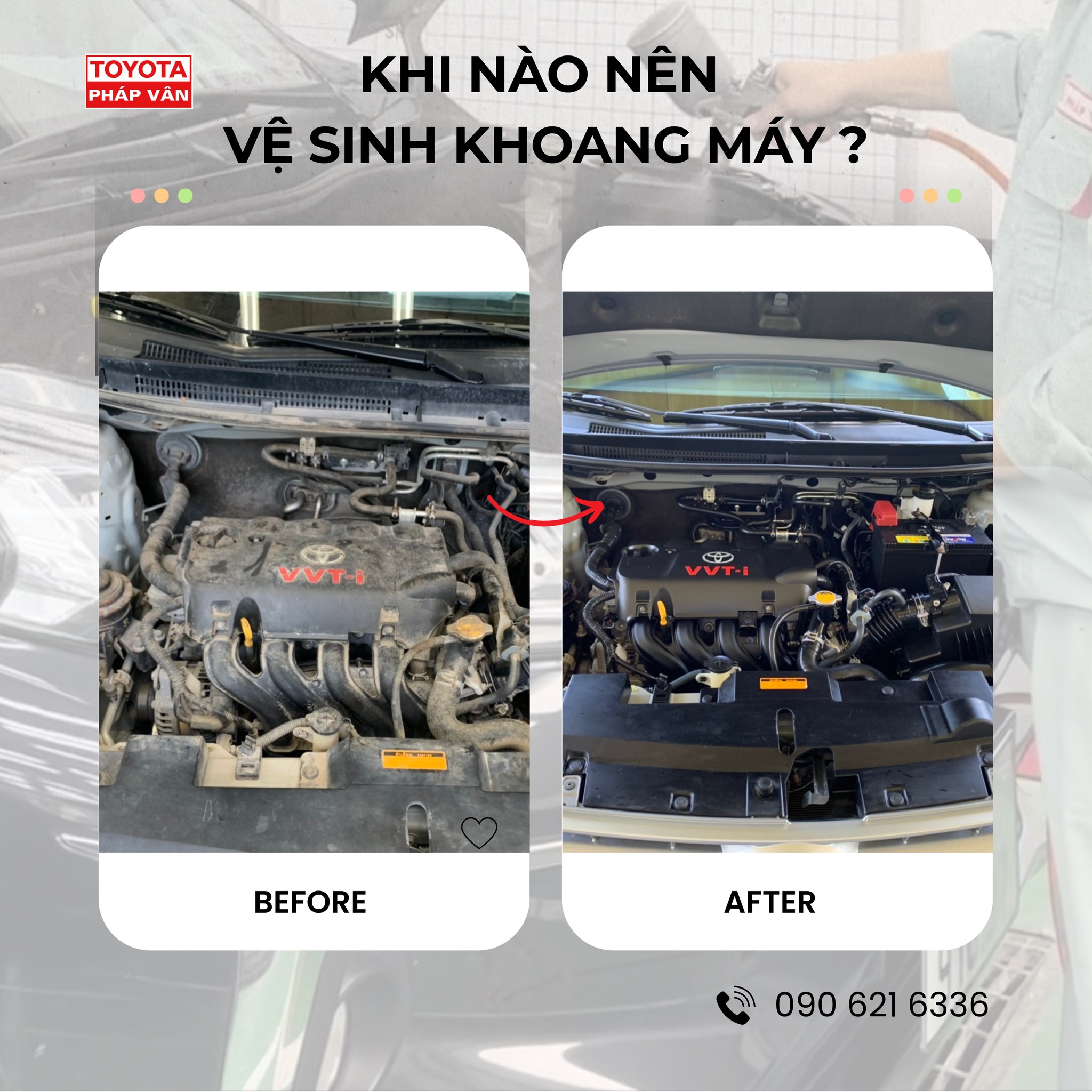 Đừng chờ đến khi xe gặp trục trặc! Vệ sinh khoang máy định kỳ tại Toyota Pháp Vân – chuyên nghiệp, an toàn, đúng chuẩn hãng.