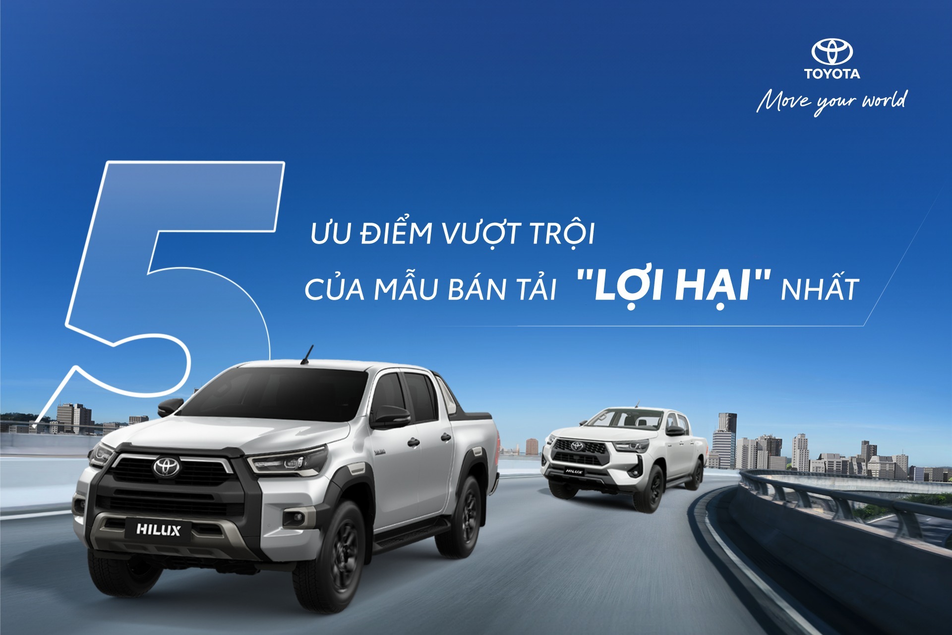 Cùng bạn chinh phục mọi thử thách - Hilux chính là mảnh ghép lý tưởng để bạn ghi dấu mọi điểm đến và mang đến sự phấn khích đầy khác biệt khi cầm lái.