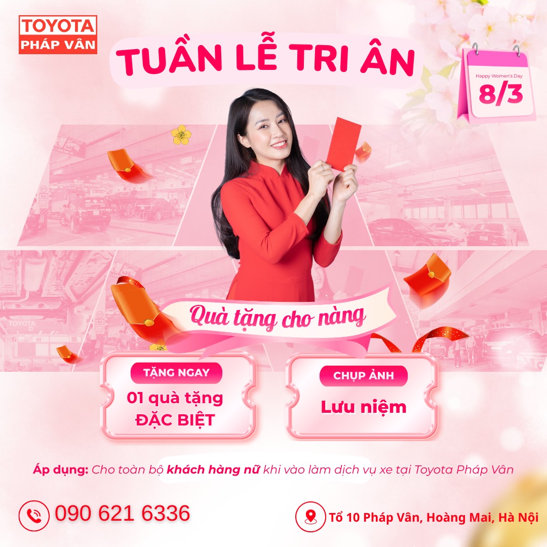 Để ngày 8/3 thêm trọn vẹn, hãy để Toyota Pháp Vân đồng hành cùng "xế cưng" của bạn trên mọi cung đường bình an!