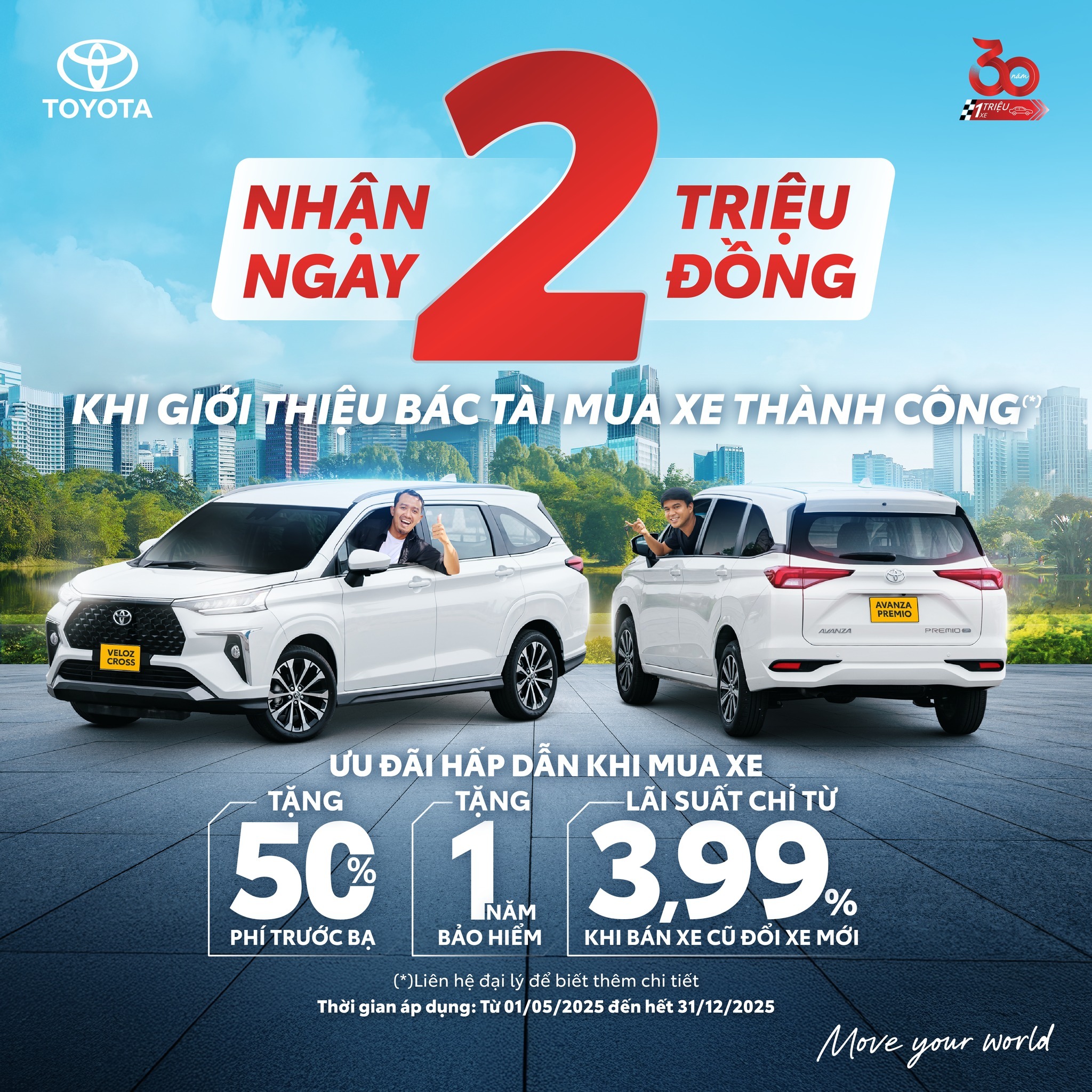 Bạn là tài xế dịch vụ (taxi, công nghệ, hợp đồng,...)? Chỉ cần giới thiệu khách hàng mua xe Toyota Veloz Cross hoặc Avanza Premio để kinh doanh vận tải, bạn sẽ nhận ngay 2 TRIỆU ĐỒNG khi giới thiệu mua xe thành công!
