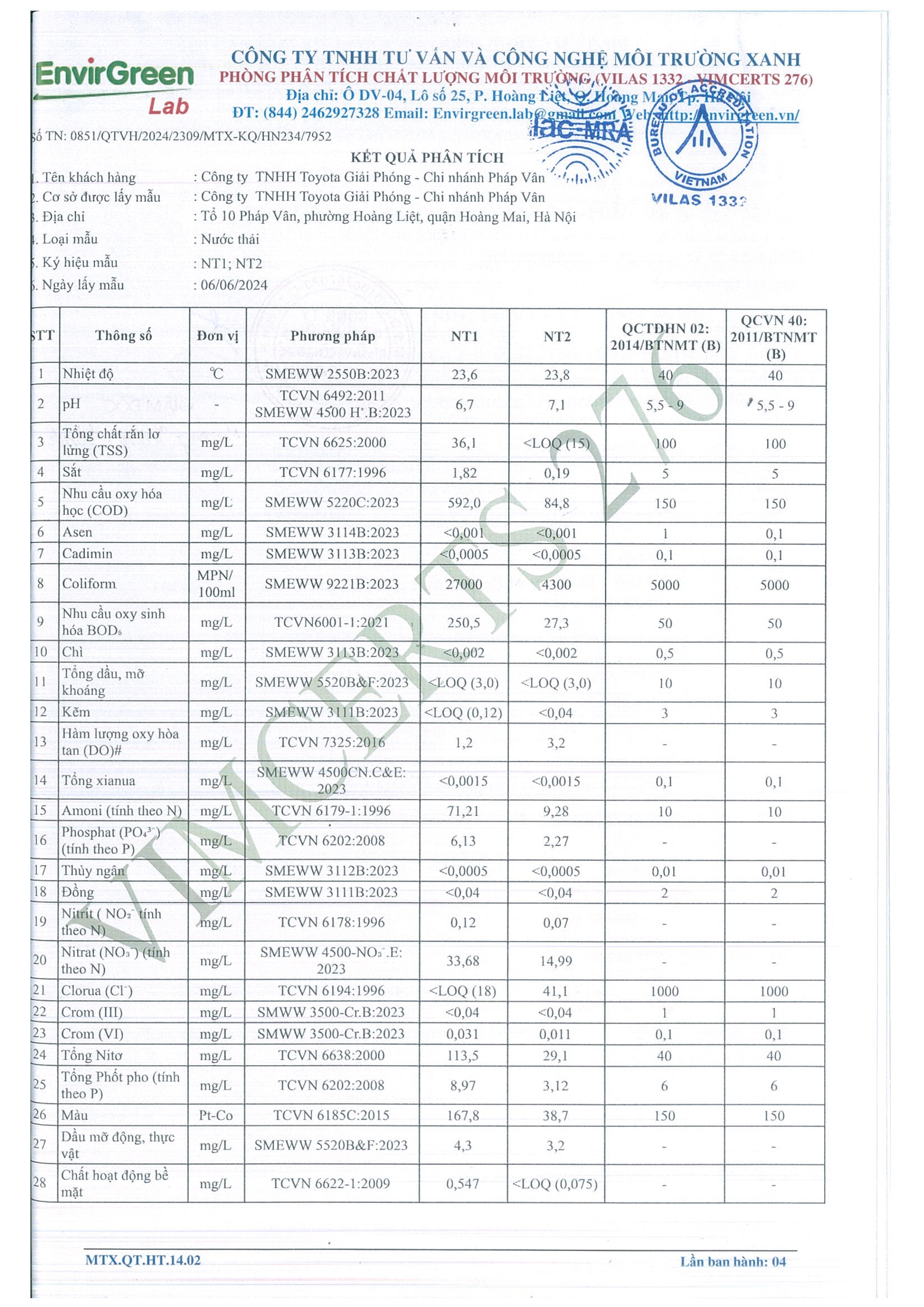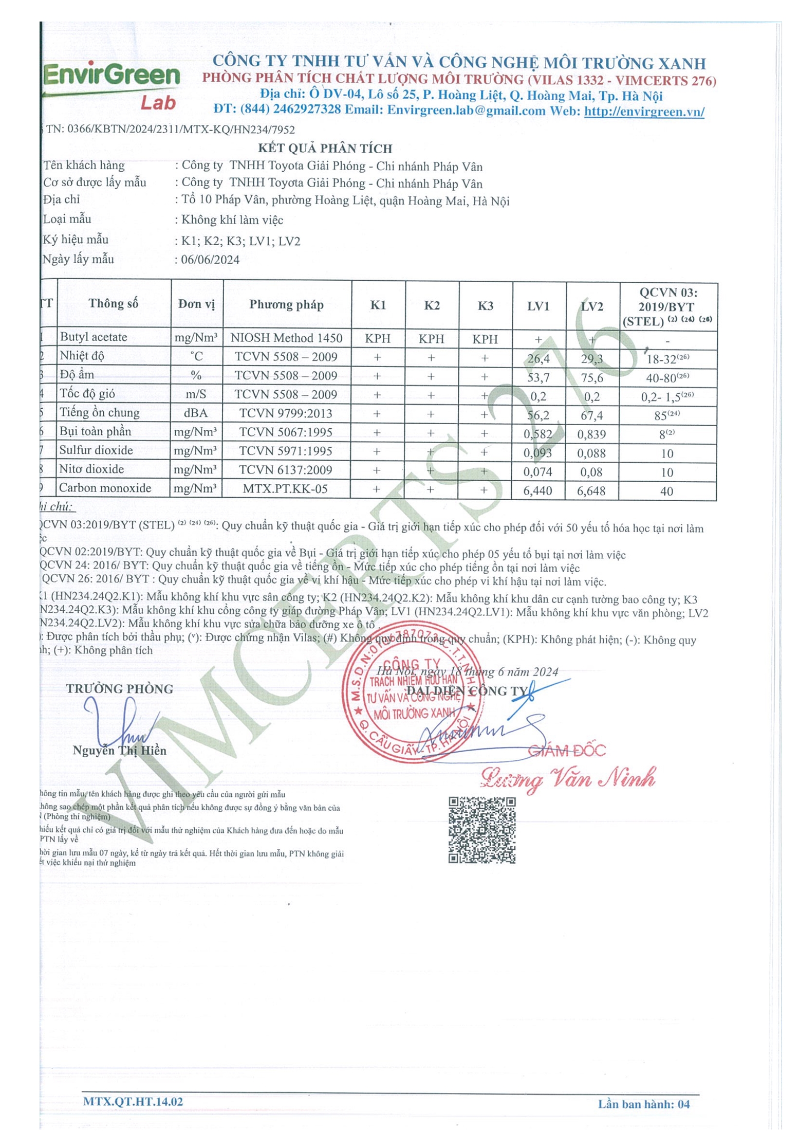 BÁO CÁO KẾT QUẢ QUAN TRẮC MÔI TRƯỜNG 2024