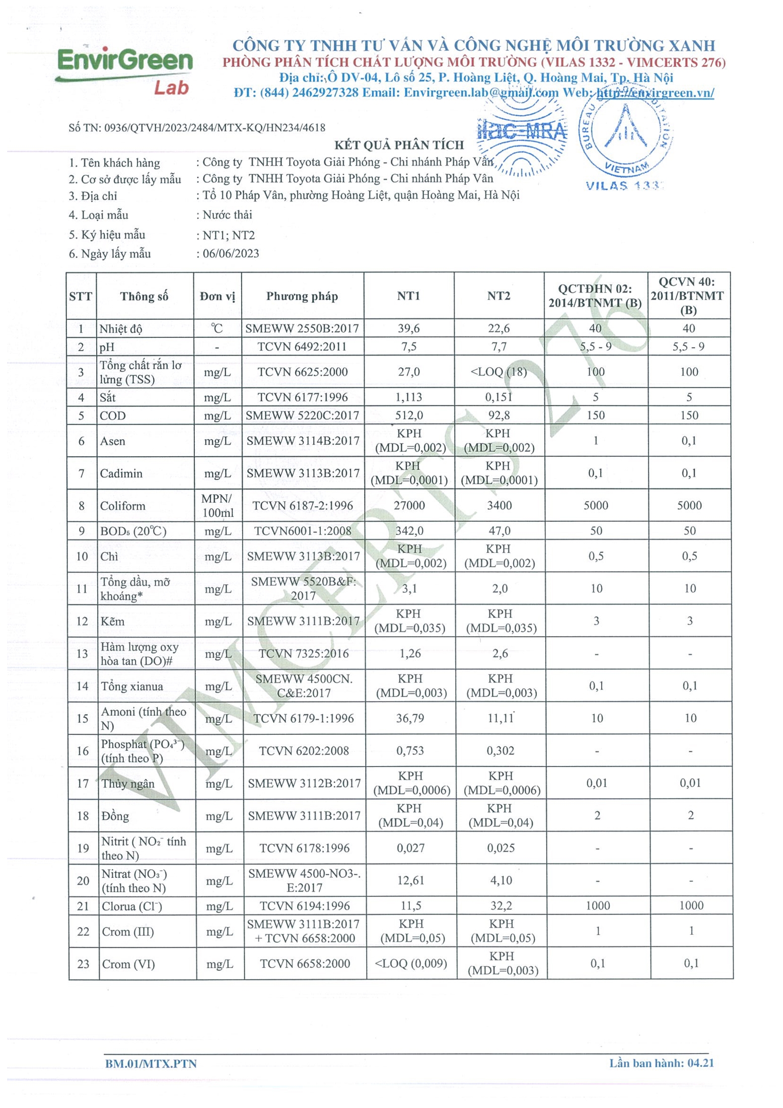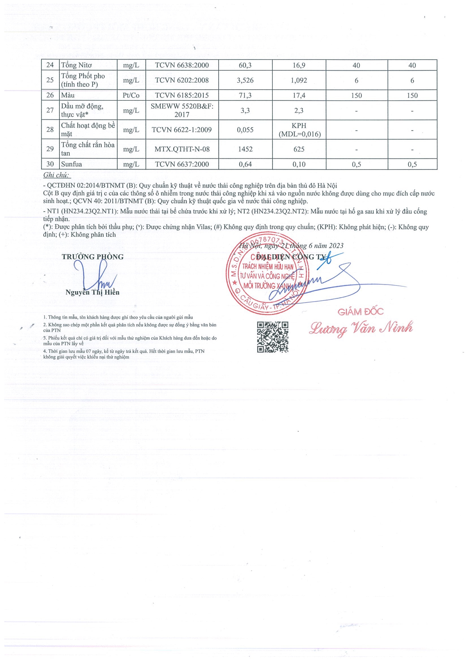 BÁO CÁO KẾT QUẢ QUAN TRẮC MÔI TRƯỜNG QUÝ II-2023