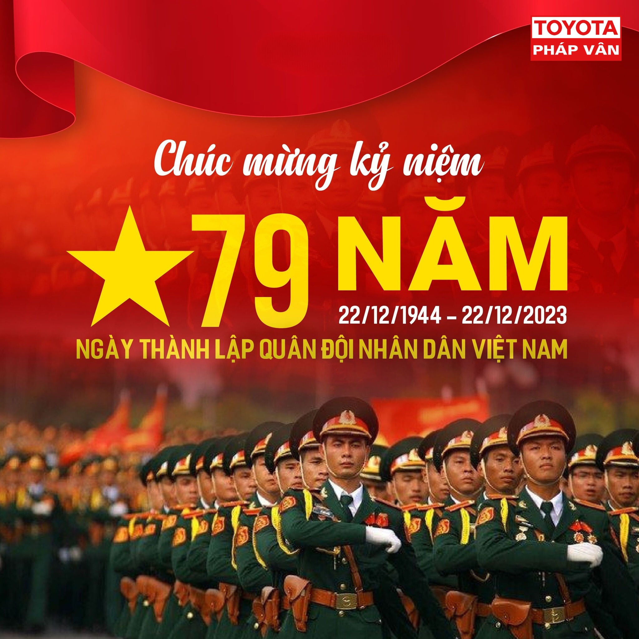 Toyota Pháp Vân xin gửi những lời chúc tốt đẹp nhất đến các đồng chí quân nhân Việt Nam nói chung và các đồng chí CBCNV tại đại lý nói riêng đã, đang công tác trong quân đội nhân dân Việt Nam.