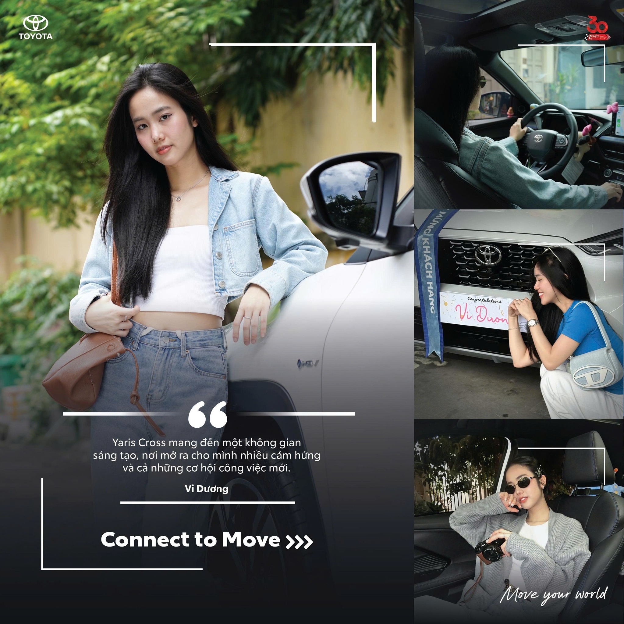 Trên mỗi hành trình, Yaris Cross đồng hành cùng Vi đến những buổi quay chụp, những cuộc gặp gỡ và những điểm đến mới. Không chỉ giúp Vi di chuyển linh hoạt, chiếc xe còn mang đến sự an tâm, tạo điều kiện để Vi mở rộng kết nối và cơ hội trong công việc cũng như cuộc sống.