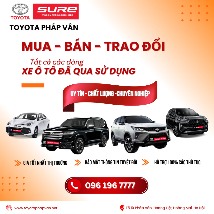 📣 Toyota Sure Pháp Vân- Mua bán xe đã qua sử dụng chính hãng với các dịch vụ: