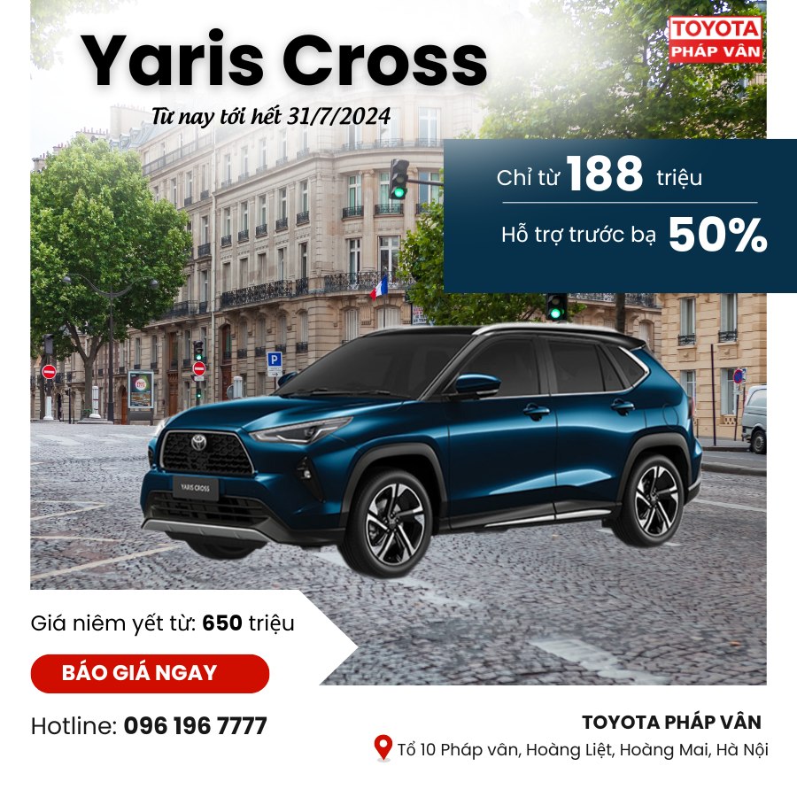 Nhắn tin ngay cho Toyota Pháp Vân hoặc gọi ngay đến Hotline: 096 196 7777 để được báo giá lăn bánh và chính sách hỗ trợ tốt nhất cho mẫu xe Yariss Cross cực hot