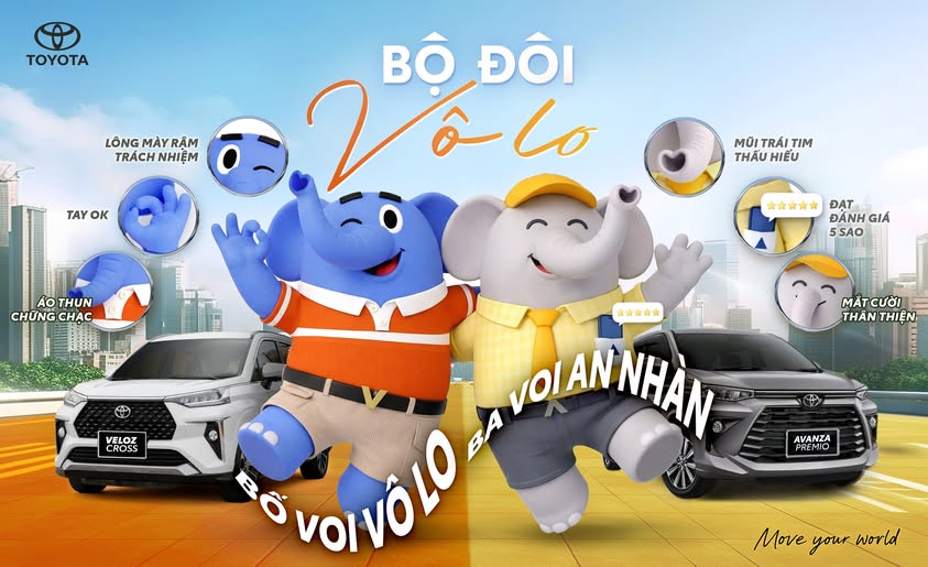 Đằng sau mỗi chiếc xe lăn bánh là một người "trụ cột" đầy bản lĩnh, luôn nỗ lực vì hạnh phúc gia đình hay sự thành công của công việc kinh doanh. Thấu hiểu những tâm tư đó, Toyota chính thức ra mắt bộ đôi Mascot đại diện cho dòng xe B-MPV: Bố Voi Vô Lo (Bố Vinh) và Ba Voi An Nhàn (Ba An).