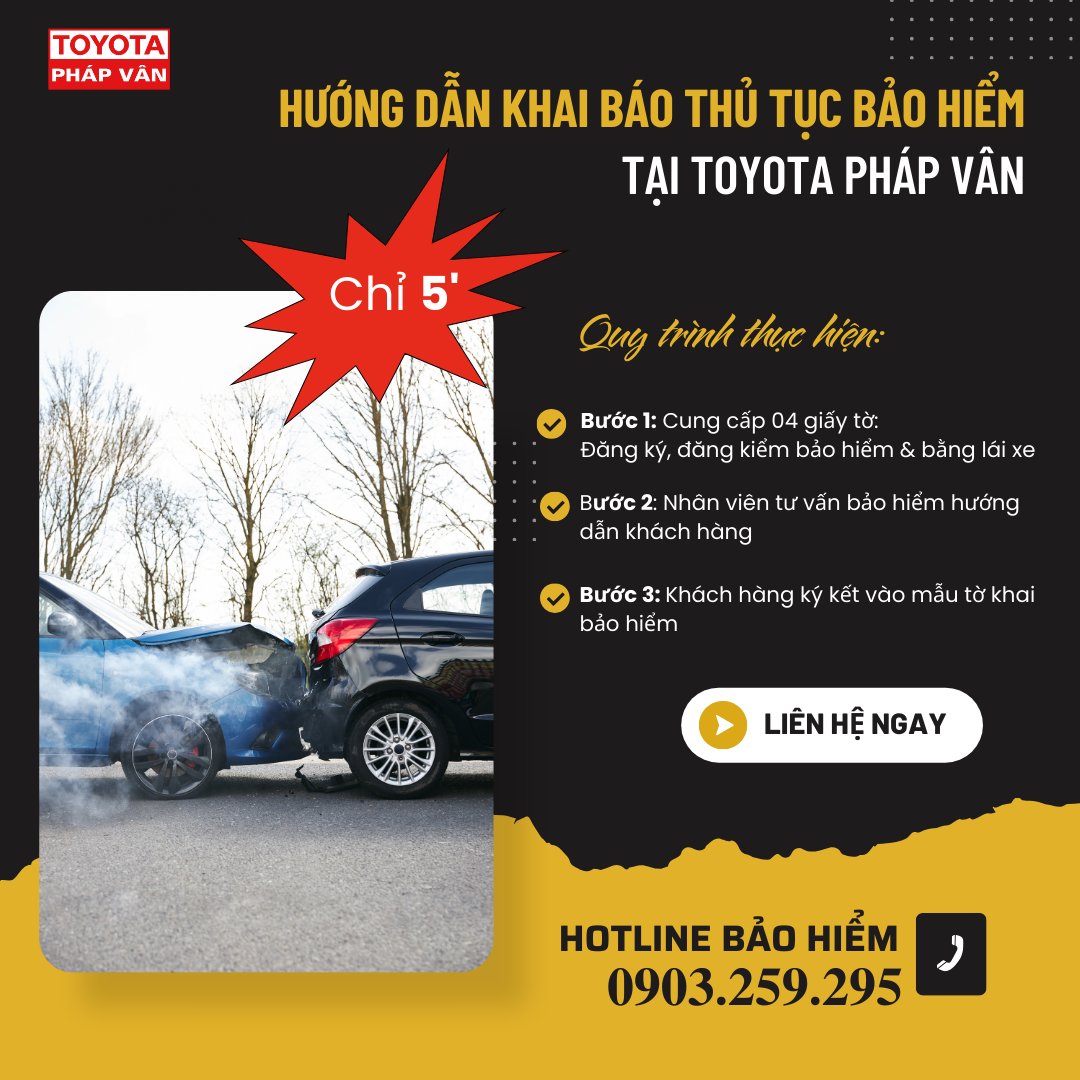 Lưu ý: Nội dung khai báo bảo hiểm, nhân viên bảo hiểm Toyota Pháp Vân cam kết hỗ trợ 100%.