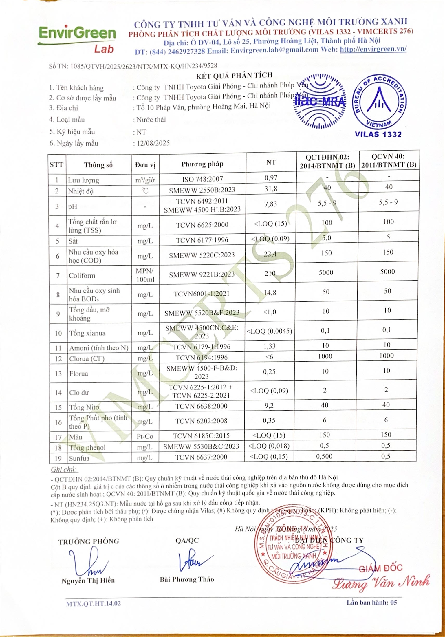 - BÁO CÁO KẾT QUẢ QUAN TRẮC MÔI TRƯỜNG QUÝ 2.2025