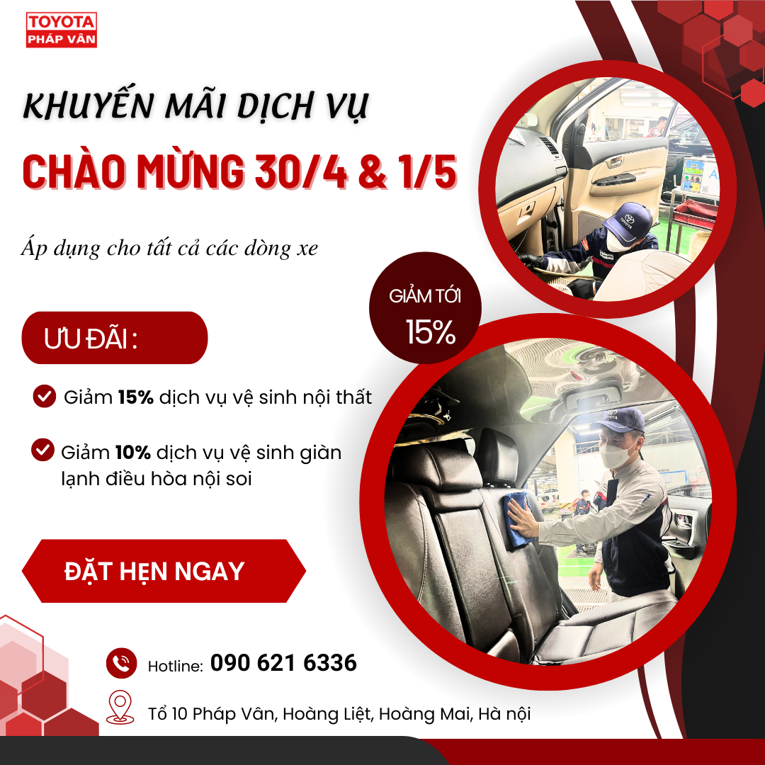 ️Tháng 4 bùng nổ khuyến mãi dành cho các khách hàng làm dịch vụ sửa chữa - bảo dưỡng tại Toyota Pháp Vân. Nhận ngay ưu đãi hấp dẫn: