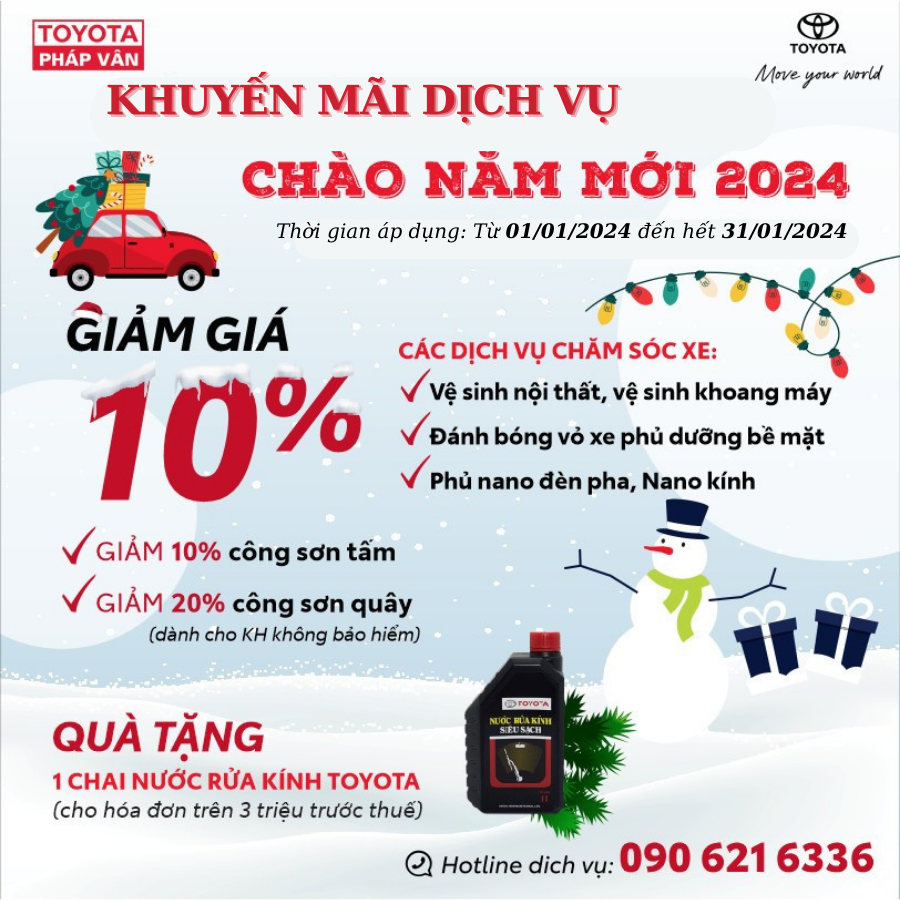 [DUY NHẤT] Toyota Pháp Vân tiếp tục mang đến Quý khách vô số ưu đãi hấp dẫn khi vào làm dịch vụ trong tháng 1 này!