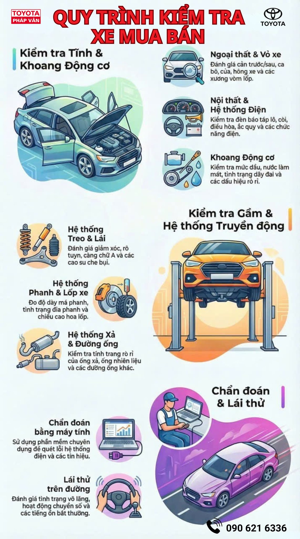 Quy trình kiểm tra xe cũ chuyên sâu tại Toyota Pháp Vân
