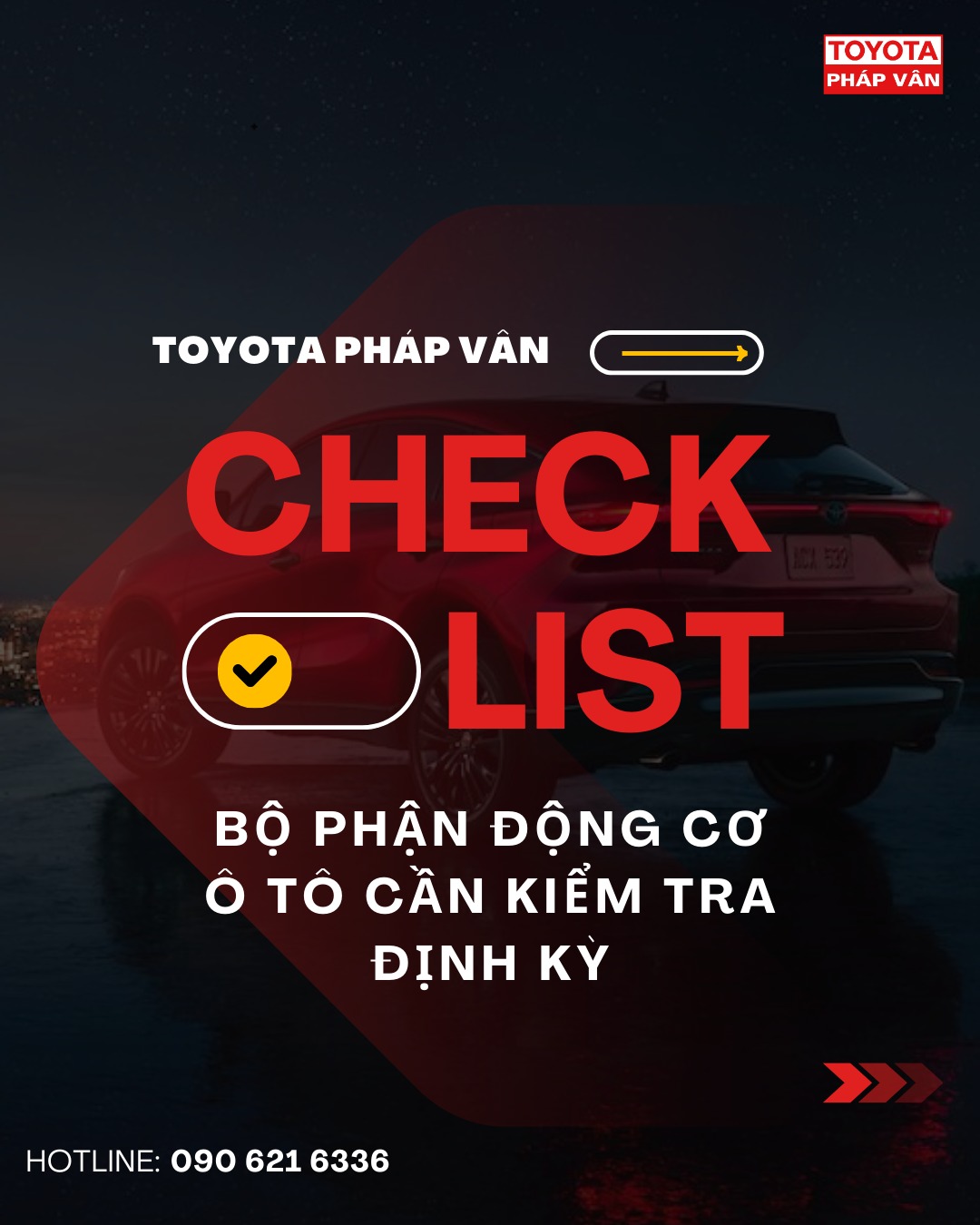 Động cơ ô tô là trái tim của một chiếc ô tô, và để đảm bảo sự hoạt động ổn định và bền bỉ, việc kiểm tra định kỳ các bộ phận động cơ là một phần quan trọng của việc bảo dưỡng và bảo trì xe hơi. Thậm chí, những bộ phận này còn có thể ảnh hưởng đến hiệu suất lái xe và tiết kiệm nhiên liệu. Dưới đây là một số bộ phận động cơ quan trọng theo Toyota Pháp Vân bạn nên kiểm tra định kỳ.