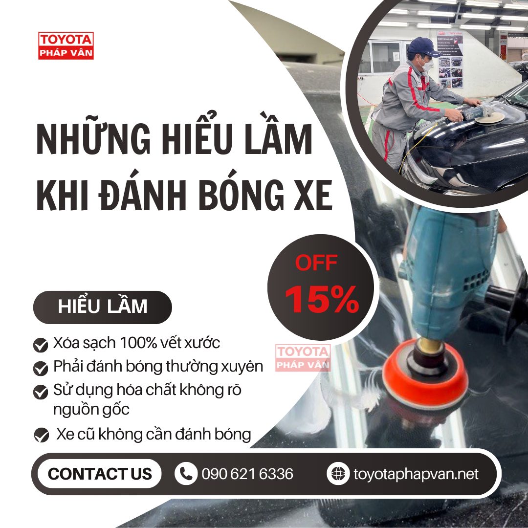 Đánh bóng xe không chỉ giúp xe của bạn trông sáng bóng và mới mẻ hơn mà còn bảo vệ bề mặt sơn khỏi các yếu tố tác động xấu từ môi trường. Tuy nhiên, có nhiều hiểu lầm phổ biến mà người dùng thường mắc phải khi đánh bóng xe. Hãy cùng tìm hiểu để có một quy trình chăm sóc xe hoàn hảo hơn. Hãy cùng Toyota Pháp Vân tìm hiểu ngay nhé!