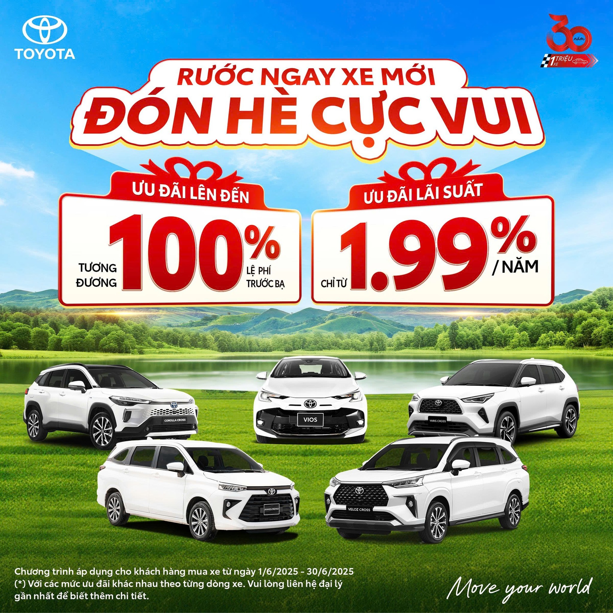Tháng 6 này, Toyota Pháp Vân đồng hành cùng bạn trên mọi nẻo đường khám phá mùa hè với những ưu đãi cực hấp dẫn. Cơ hội sở hữu xe mới dễ dàng hơn bao giờ hết.