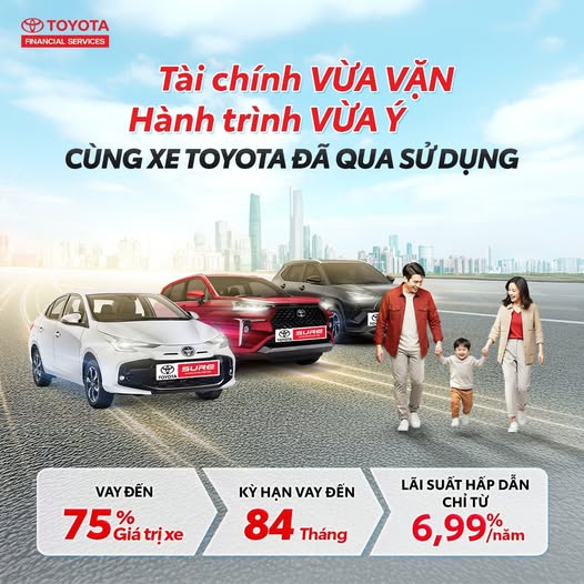 Việc sở hữu một chiếc xe ô tô chất lượng, phù hợp nhu cầu di chuyển hằng ngày nhưng vẫn đảm bảo chi phí hợp lý luôn là mong muốn của rất nhiều khách hàng. Hiểu được điều đó, TFSVN mang đến chương trình hỗ trợ vay mua xe Toyota đã qua sử dụng với nhiều ưu đãi vượt trội, áp dụng trên toàn hệ thống đại lý T-Sure. Đây chính là giải pháp giúp bạn dễ dàng hiện thực hóa mục tiêu sở hữu một “người bạn đồng hành bốn bánh” đáng tin cậy mà không phải lo lắng quá nhiều về tài chính.