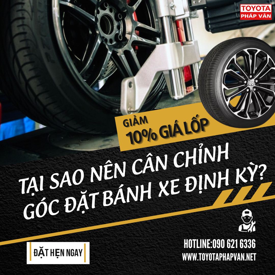 Định kỳ chỉnh góc đặt bánh xe là một thủ tục quan trọng và cần thiết để bảo dưỡng và duy trì hiệu suất của xe hơi. Việc này không chỉ giữ cho bánh xe của bạn ổn định mà còn đảm bảo an toàn khi lái xe. Trong bài viết này, chúng ta sẽ tìm hiểu tại sao việc chỉnh góc đặt bánh xe định kỳ là điều cần thiết và lợi ích mà nó mang lại. Hãy cùng Toyota Pháp Vân tìm hiểu ngay nhé!