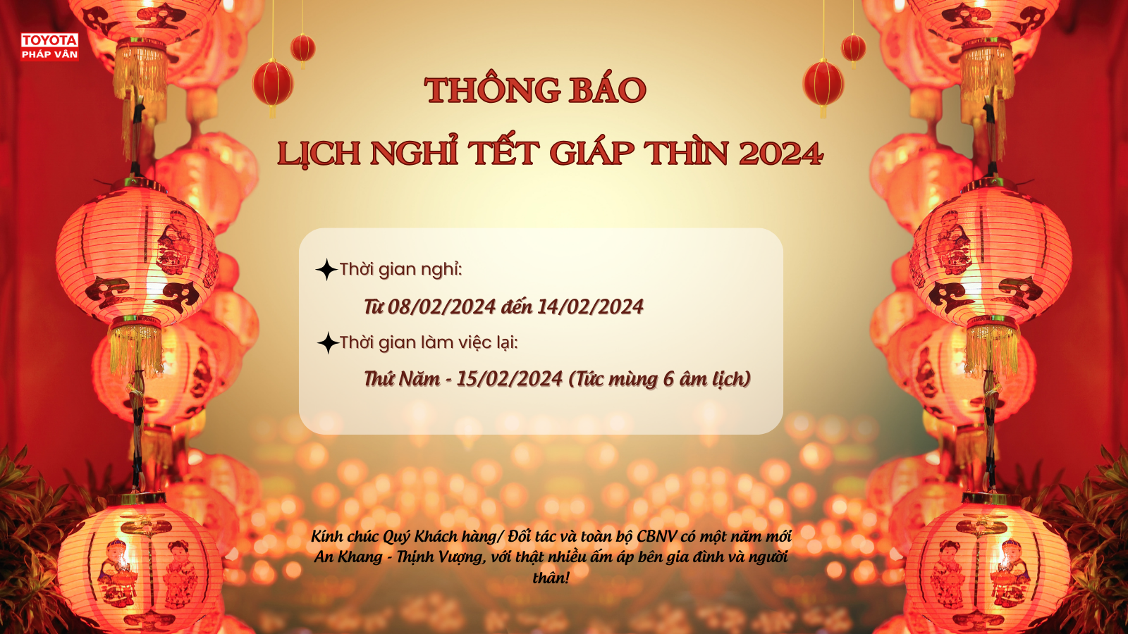 THÔNG BÁO LỊCH NGHỈ TẾT GIÁP THÌN 2024 TẠI TOYOTA PHÁP VÂN