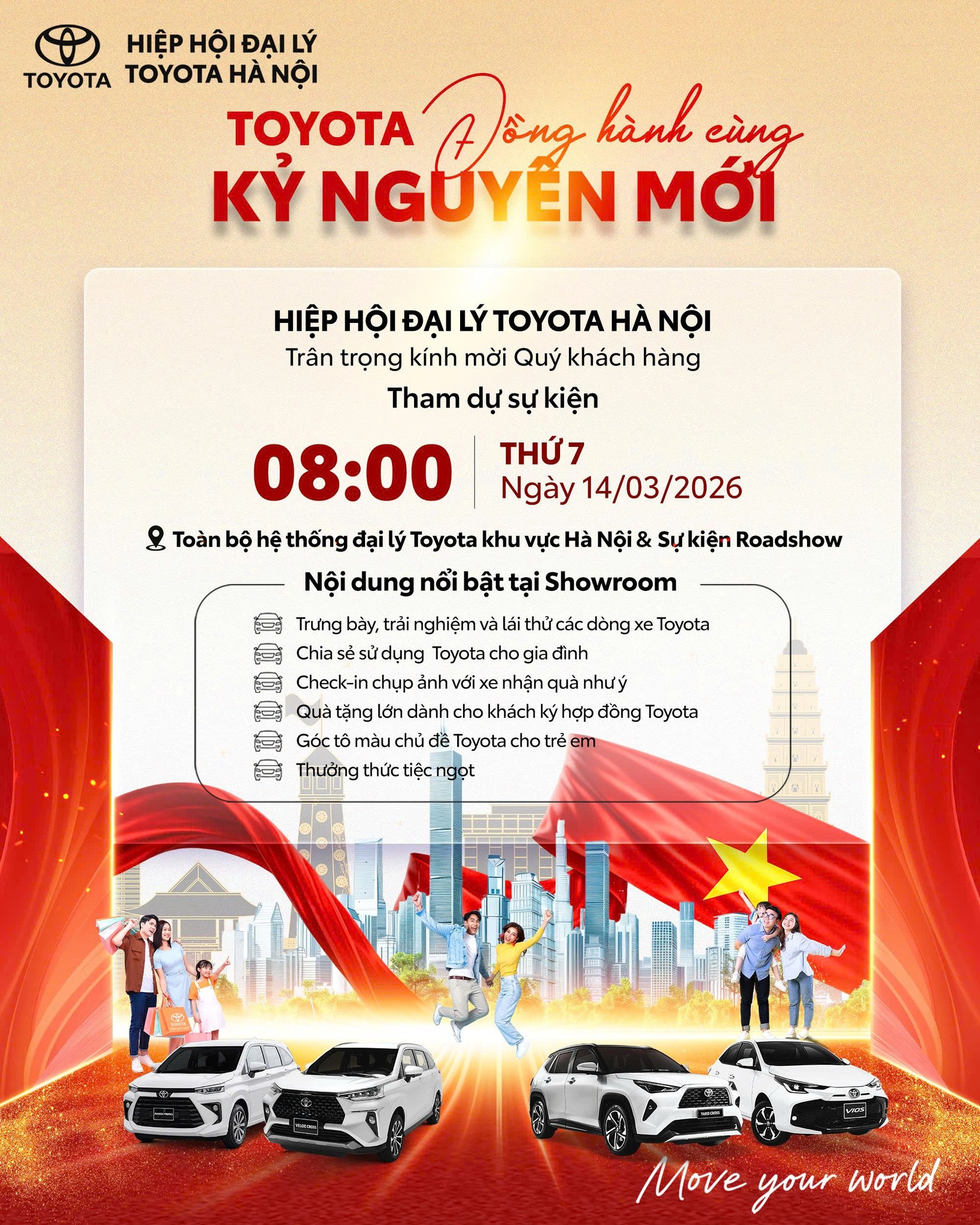 Toyota Hà Nội trân trọng kính mời Quý khách cùng gia đình đến tham dự để trải nghiệm một ngày hội công nghệ, gia đình và tương lai di chuyển bền vững.