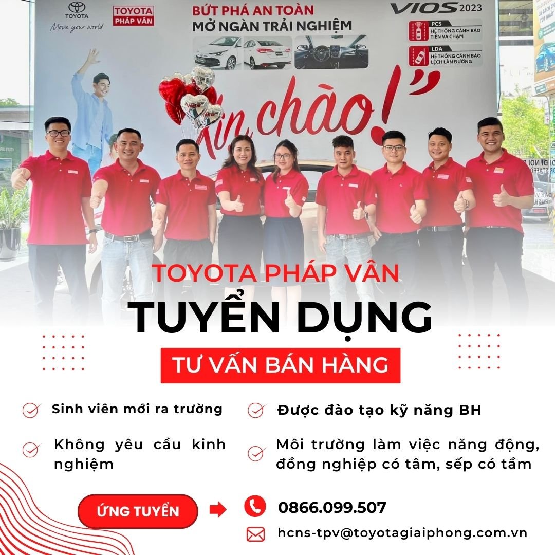[TOYOTA GIẢI PHÓNG - CN PHÁP VÂN] TUYỂN DỤNG NHÂN VIÊN TƯ VẤN BÁN HÀNG!