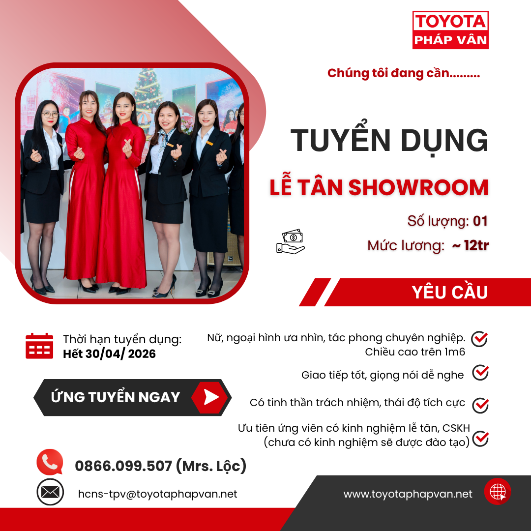 #ToyotaPhapVan #Tuyendung #LetanShowroom #ViecLamHaNoi #ToyotaVietnam #Hiring