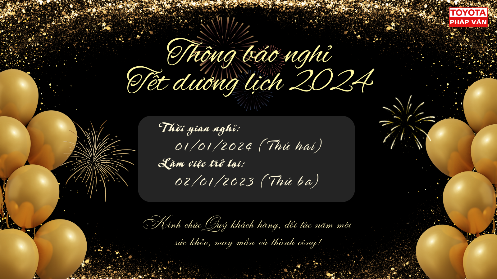 TOYOTA PHÁP VÂN THÔNG BÁO LỊCH NGHỈ TẾT DƯƠNG LỊCH 2024!