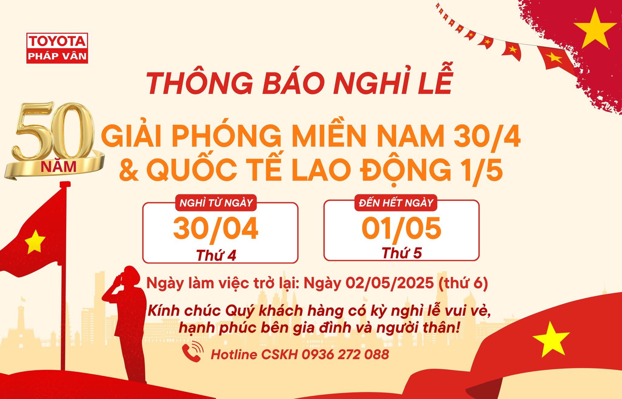 TOYOTA PHÁP VÂN_THÔNG BÁO LỊCH NGHỈ LỄ 30/4 & 1/5