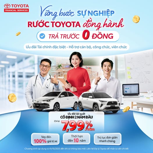 Để việc sở hữu xe trở nên dễ dàng, phục vụ nhu cầu đi lại, nâng cao chất lượng cuộc sống của cán bộ, công chức, viên chức nhà nước, TFSVN giới thiệu chương trình hỗ trợ đặc biệt với kế hoạch chi trả linh hoạt và lãi suất hấp dẫn: